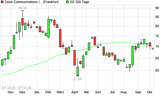 Mit dem Rücksetzer auf 69,18 EUR hat die Zoom Video Communications-Aktie am 06.10.2025 die 200-Tage-Linie nach unten gekreuzt.