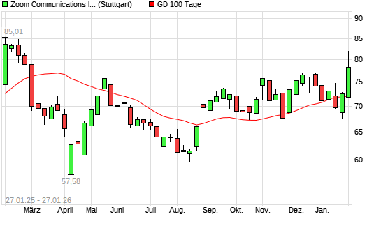 Mit dem Anstieg auf 79,98 EUR hat die Zoom Video Communications-Aktie am 26.01.2026 die 100-Tage-Linie nach oben gekreuzt.Die Zoom Video Communications-Aktie befindet sich seit ...weiterlesen