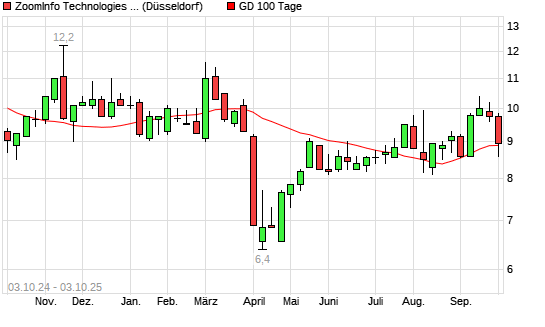 Mit dem Rücksetzer auf 8,50 EUR hat die ZoomInfo Technologies-Aktie am 02.10.2025 die 100-Tage-Linie nach unten gekreuzt.