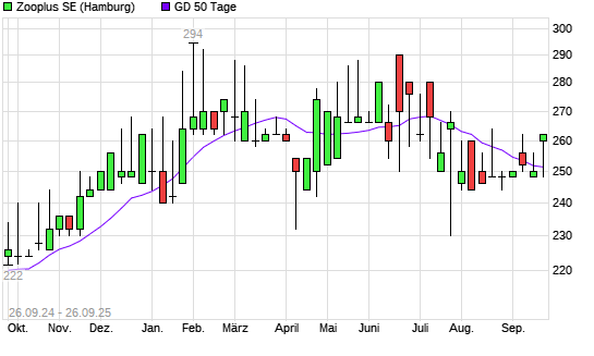 Mit dem Anstieg auf 254,00 EUR hat die Zooplus-Aktie am 25.09.2025 die 50-Tage-Linie nach oben gekreuzt.