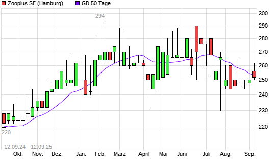 Mit dem Rücksetzer auf 250,00 EUR hat die Zooplus-Aktie am 11.09.2025 die 50-Tage-Linie nach unten gekreuzt.