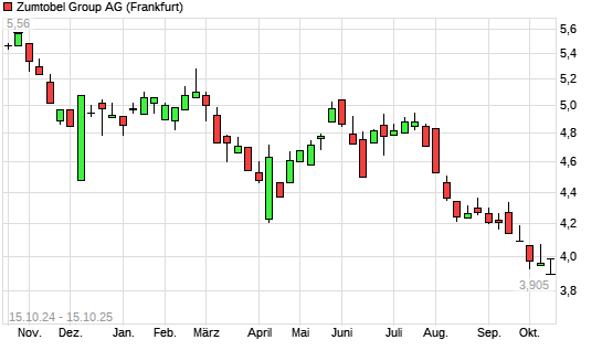Mit dem Rücksetzer auf 3,90 EUR hat die Zumtobel-Aktie (ISIN AT0000837307) am 14.10.2025 ein neues All-Time-Low erreicht und damit den Kurs vom 30.09.2025 eingestellt.