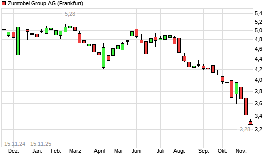 Mit dem Rücksetzer auf 3,28 EUR hat die Zumtobel-Aktie (ISIN AT0000837307) am 14.11.2025 ein neues All-Time-Low erreicht und damit den Kurs vom 12.11.2025 eingestellt.
