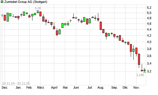 Mit dem Rücksetzer auf 3,20 EUR hat die Zumtobel-Aktie (ISIN AT0000837307) am 21.11.2025 ein neues All-Time-Low erreicht und damit den Kurs vom 19.11.2025 eingestellt.