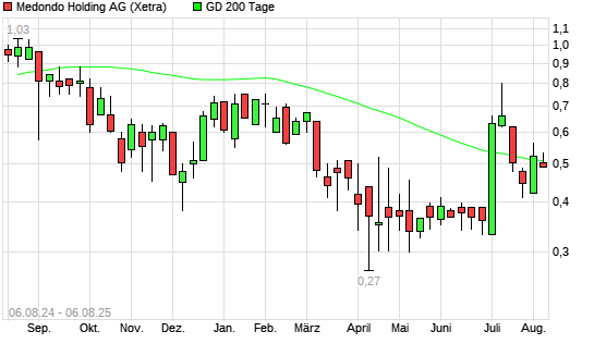 Mit dem Rücksetzer auf 0,47 EUR hat die amalphi-Aktie am 05.08.2025 die 200-Tage-Linie nach unten gekreuzt.