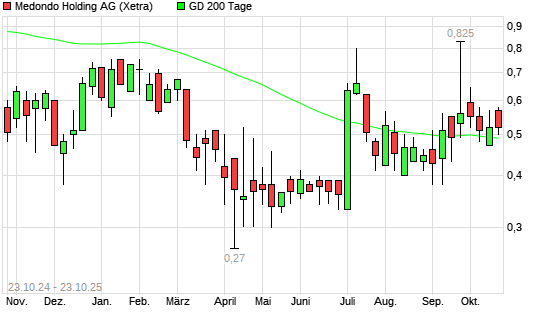 Mit dem Rücksetzer auf 0,42 EUR hat die amalphi-Aktie am 22.10.2025 die 200-Tage-Linie nach unten gekreuzt.