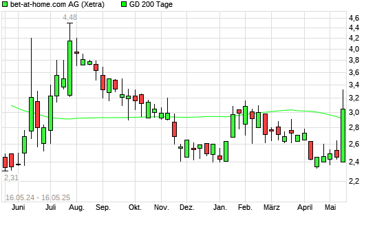 Mit dem Anstieg auf 3,15 EUR hat die bet-at-home.com-Aktie am 15.05.2025 die 200-Tage-Linie nach oben gekreuzt.