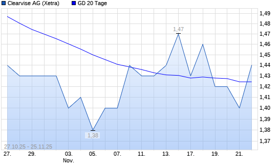Mit dem Rücksetzer auf 1,38 EUR hat die clearvise AG-Aktie am 24.11.2025 die 20-Tage-Linie nach unten gekreuzt.