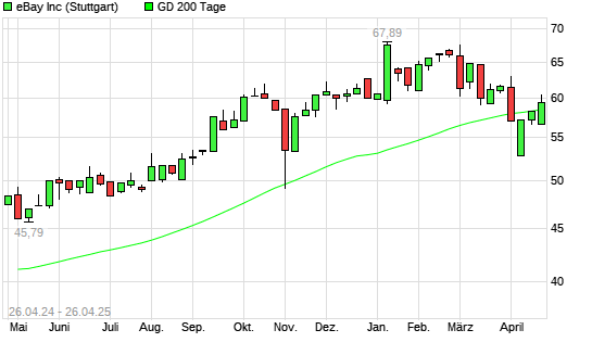 Mit dem Anstieg auf 59,27 EUR hat die eBay-Aktie am 25.04.2025 die 200-Tage-Linie nach oben gekreuzt.