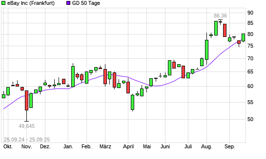 Mit dem Anstieg auf 78,01 EUR hat die eBay-Aktie am 24.09.2025 die 50-Tage-Linie nach oben gekreuzt.