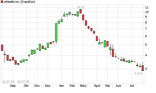 Mit dem Rücksetzer auf 3,09 EUR hat die eHealth-Aktie (ISIN US28238P1093) am 30.07.2025 ein neues 12-Monats-Tief erreicht und damit den Kurs vom 21.07.2025 eingestellt.