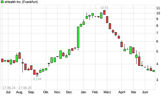 Mit dem Rücksetzer auf 3,47 EUR hat die eHealth-Aktie (ISIN US28238P1093) am 16.06.2025 ein neues 6-Monats-Tief erreicht und damit den Kurs vom 13.06.2025 eingestellt.
