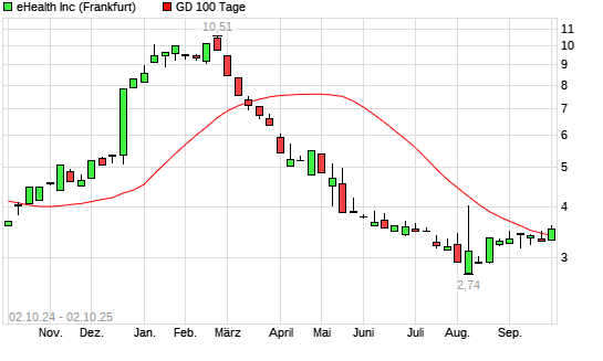 Mit dem Anstieg auf 3,59 EUR hat die eHealth-Aktie am 01.10.2025 die 100-Tage-Linie nach oben gekreuzt.