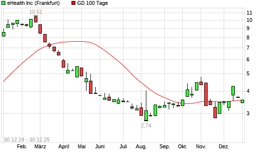 Mit dem Rücksetzer auf 3,43 EUR hat die eHealth-Aktie am 29.12.2025 die 100-Tage-Linie nach unten gekreuzt.