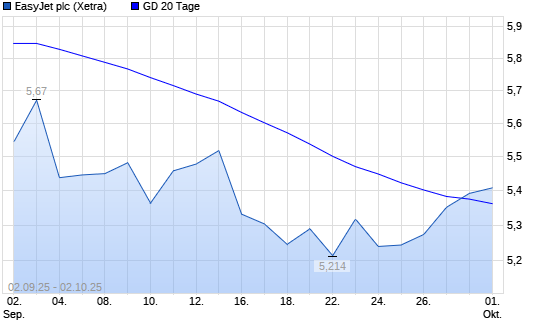 Mit dem Anstieg auf 5,40 EUR hat die easyJet Airline-Aktie am 01.10.2025 die 20-Tage-Linie nach oben gekreuzt.