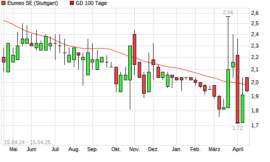 Mit dem Anstieg auf 1,99 EUR hat die elumeo SE-Aktie am 14.04.2025 die 100-Tage-Linie nach oben gekreuzt.