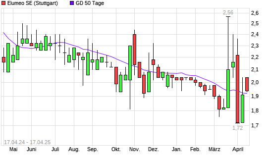 Mit dem Anstieg auf 1,93 EUR hat die elumeo SE-Aktie am 16.04.2025 die 50-Tage-Linie nach oben gekreuzt.