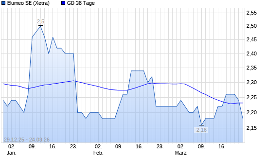 Mit dem Rücksetzer auf 2,08 EUR hat die elumeo SE-Aktie am 23.03.2026 die 38-Tage-Linie nach unten gekreuzt.