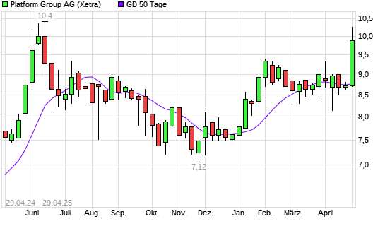 Mit dem Anstieg auf 9,70 EUR hat die fashionette-Aktie am 28.04.2025 die 50-Tage-Linie nach oben gekreuzt.
