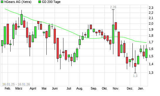 Mit dem Anstieg auf 1,54 EUR hat die hGears-Aktie am 15.01.2026 die 200-Tage-Linie nach oben gekreuzt.