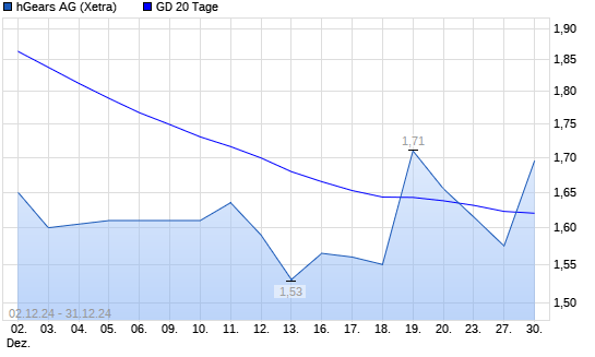 Mit dem Rücksetzer auf 1,55 EUR hat die hGears-Aktie am 30.12.2024 die 20-Tage-Linie nach unten gekreuzt.
