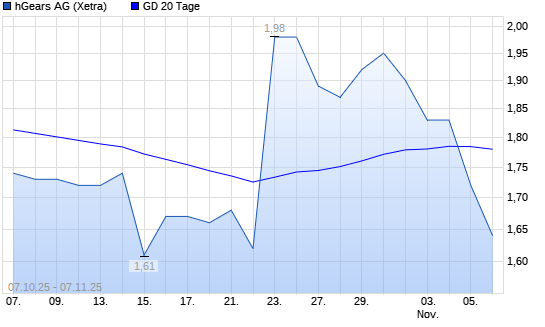 Mit dem Rücksetzer auf 1,58 EUR hat die hGears-Aktie am 06.11.2025 die 20-Tage-Linie nach unten gekreuzt.