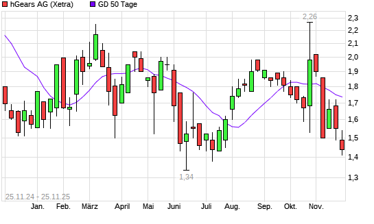 Mit dem Rücksetzer auf 1,49 EUR hat die hGears-Aktie am 24.11.2025 die 50-Tage-Linie nach unten gekreuzt.