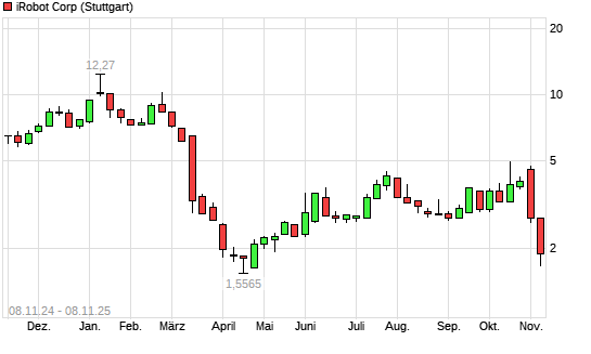 Mit dem Rücksetzer auf 1,90 EUR hat die iRobot-Aktie (ISIN US4627261005) am 07.11.2025 ein neues 6-Monats-Tief erreicht und damit den Kurs vom 07.05.2025 eingestellt.