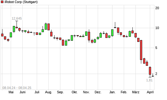 Mit dem Rücksetzer auf 1,90 EUR hat die iRobot-Aktie (ISIN US4627261005) am 07.04.2025 ein neues All-Time-Low erreicht und damit den Kurs vom 04.04.2025 eingestellt.