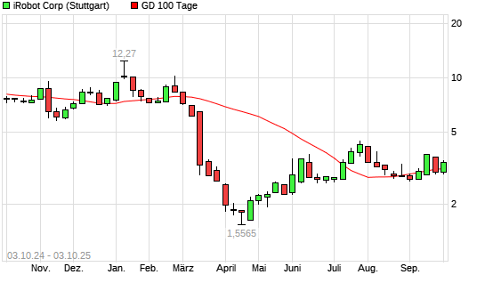 Mit dem Anstieg auf 3,24 EUR hat die iRobot-Aktie am 02.10.2025 die 100-Tage-Linie nach oben gekreuzt.