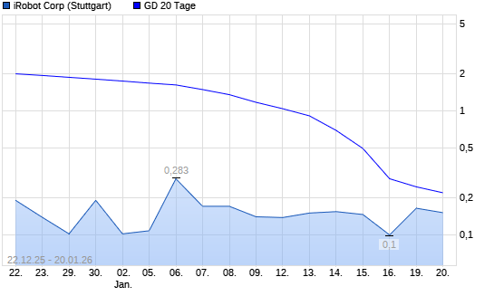 Mit dem Anstieg auf 0,18 EUR hat die iRobot-Aktie am 19.01.2026 die 20-Tage-Linie nach oben gekreuzt.Die iRobot-Aktie befindet sich seit dem 15.12.2025 im langfristigen Abwärtstrend und hat ...weiterlesen