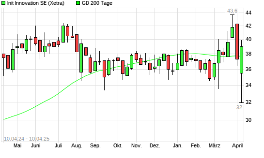 Mit dem Rücksetzer auf 37,00 EUR hat die init innovation-Aktie am 09.04.2025 die 200-Tage-Linie nach unten gekreuzt.