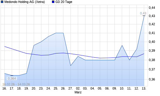 Mit dem Anstieg auf 0,33 EUR hat die medondo holding AG-Aktie am 13.03.2026 die 20-Tage-Linie nach oben gekreuzt.