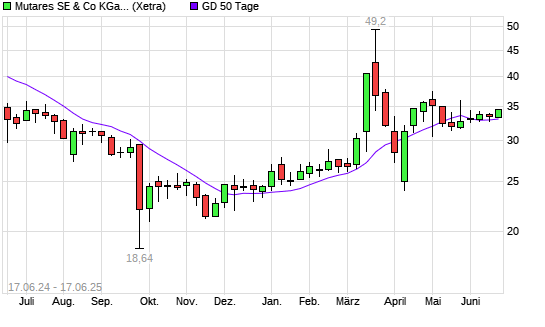 Mit dem Anstieg auf 33,60 EUR hat die mutares-Aktie am 16.06.2025 die 50-Tage-Linie nach oben gekreuzt.