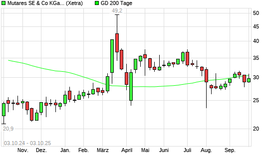 Mit dem Rücksetzer auf 29,90 EUR hat die mutares-Aktie am 02.10.2025 die 200-Tage-Linie nach unten gekreuzt.