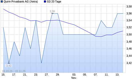 Mit dem Anstieg auf 3,44 EUR hat die quirin bank-Aktie am 14.11.2025 die 20-Tage-Linie nach oben gekreuzt.