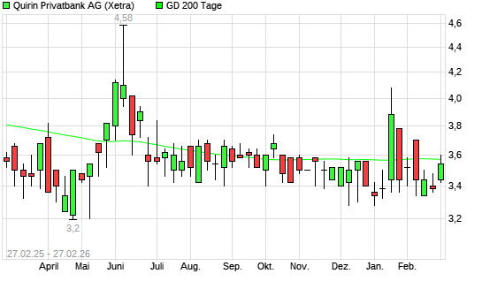 Mit dem Anstieg auf 3,48 EUR hat die quirin bank-Aktie am 26.02.2026 die 200-Tage-Linie nach oben gekreuzt.