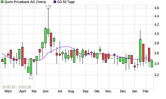 Mit dem Anstieg auf 3,40 EUR hat die quirin bank-Aktie am 09.02.2026 die 50-Tage-Linie nach oben gekreuzt.