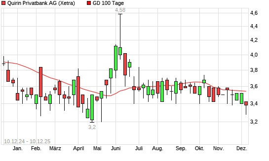 Mit dem Rücksetzer auf 3,40 EUR hat die quirin bank-Aktie am 09.12.2025 die 100-Tage-Linie nach unten gekreuzt.