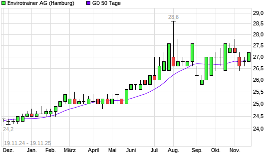 Mit dem Anstieg auf 27,00 EUR hat die va-Q-tec-Aktie am 18.11.2025 die 50-Tage-Linie nach oben gekreuzt.