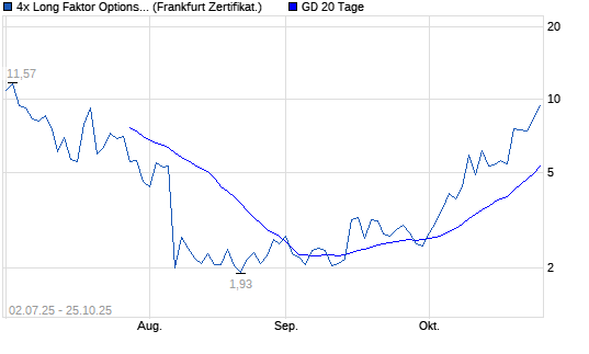 Der Optionsschein bildet die tägliche Entwicklung des Basiswertes gehebelt um den Faktor 4 ab.