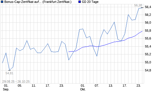Das Zertifikat bietet dann eine zusätzliche Bonuschance, wenn der Basiswert die Barriere von 32,00 EUR (akt. Sicherheitspuffer: 34,49%) zwischen dem 27.08.25 und dem Ende der Laufzeit nicht berührt oder unterschreitet.