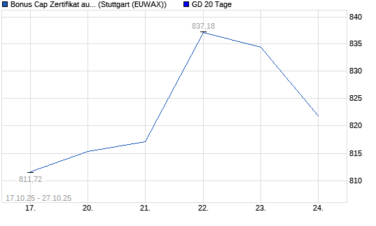 Das Zertifikat bietet dann eine zusätzliche Bonuschance, wenn der Basiswert die Barriere von 500,00 EUR (akt. Sicherheitspuffer: 18,46%) zwischen dem 17.10.25 und dem Ende der Laufzeit nicht berührt oder unterschreitet.