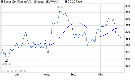Wenn diese Barriere nicht erreicht wird, erhält der Anleger mindestens eine Rückzahlung entsprechend eines Kurses des Basiswertes von 380,00 EUR. Wenn die Performance des Basiswertes darüber hinausgehen sollte, partizipiert der Anleger stattdessen vollständig daran.