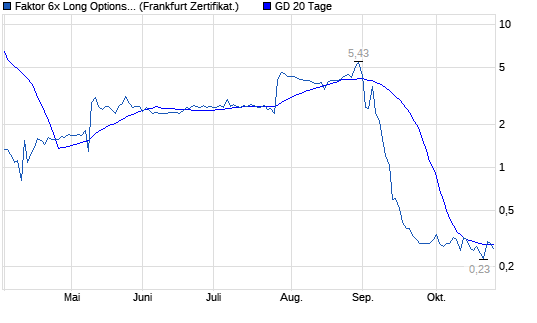 Der Optionsschein bildet die tägliche Entwicklung des Basiswertes gehebelt um den Faktor 6 ab.
