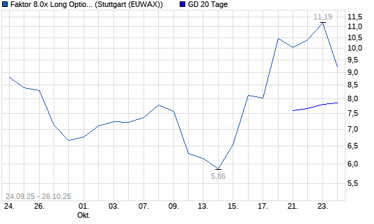 Der Optionsschein bildet die tägliche Entwicklung des Basiswertes gehebelt um den Faktor 8 ab.