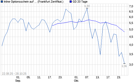 Bei diesem Optionsschein erhält der Anleger einen Betrag von 10,00 EUR ausbezahlt, wenn sich der Kurs des Basiswertes während der Beobachtungsperiode vom 22.08.25 bis zum 16.01.26 immer zwischen 25,00 EUR und 50,00 EUR bewegt.