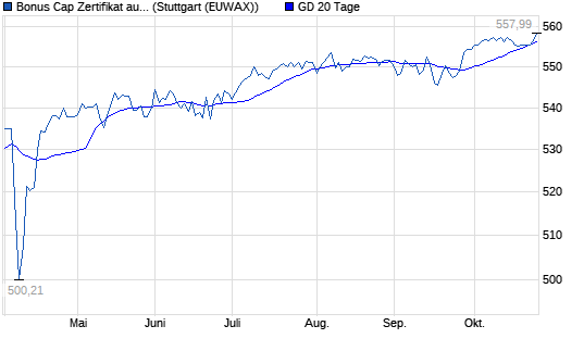 Wenn diese Barriere nicht erreicht wird, erhält der Anleger mindestens eine Rückzahlung entsprechend eines Kurses des Basiswertes von 560,00 EUR. Der Anleger kann allerdings maximal bis zu einem Kurs des Basiswertes von 560,00 EUR an der Entwicklung teilhaben.