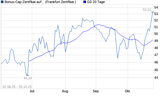 Das Zertifikat bietet dann eine zusätzliche Bonuschance, wenn der Basiswert die Barriere von 34,00 EUR (akt. Sicherheitspuffer: 26,26%) zwischen dem 29.05.25 und dem Ende der Laufzeit nicht berührt oder unterschreitet.