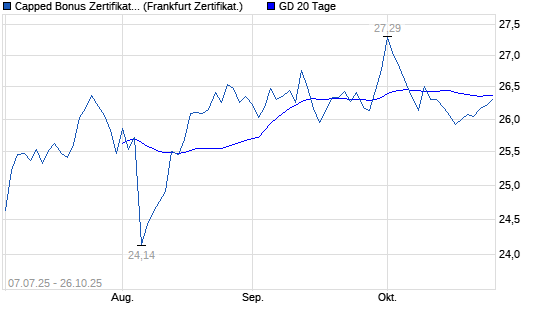 Das Zertifikat bietet dann eine zusätzliche Bonuschance, wenn der Basiswert die Barriere von 20,00 EUR (akt. Sicherheitspuffer: 27,88%) zwischen dem 07.07.25 und dem Ende der Laufzeit nicht berührt oder unterschreitet.